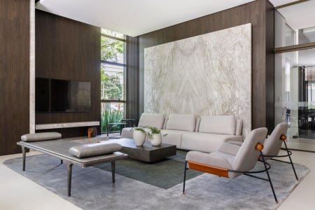 Na unidade da Simmetria Ambienti, a atemporalidade marca o décor do apartamento de 130 m² e três suítes. Entre os móveis escolhidos a dedo pela arquiteta para combinar com o elevado padrão de qualidade do empreendimento, estão peças de renomados criadores, como Maurício Bonfim, Arthur Casas.