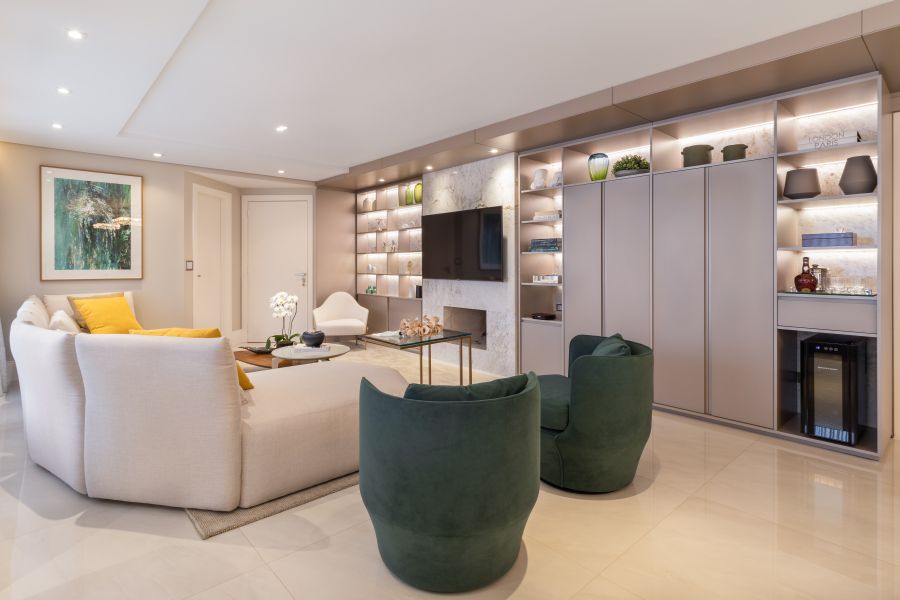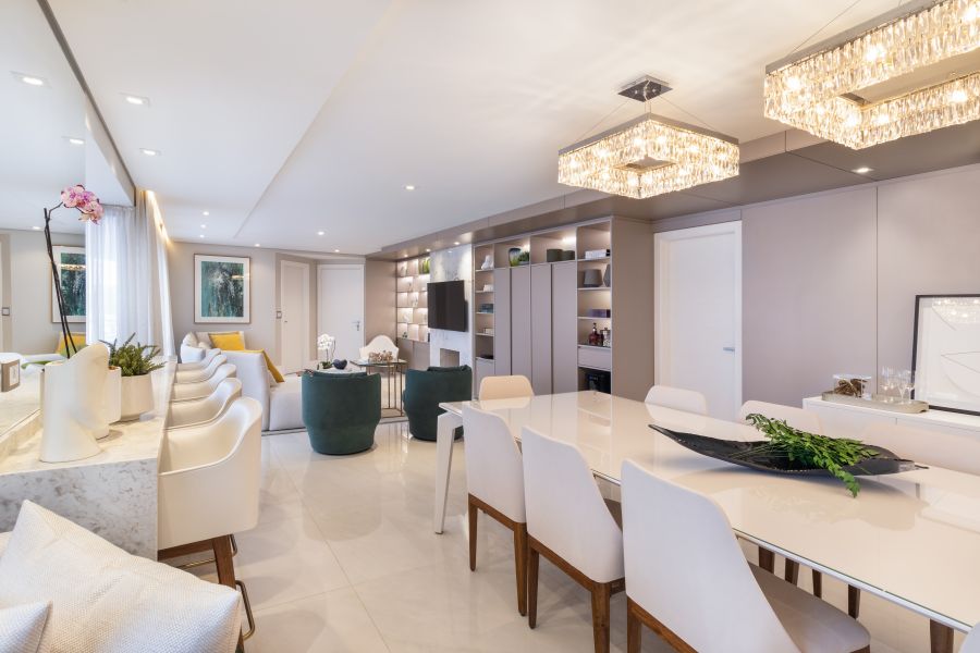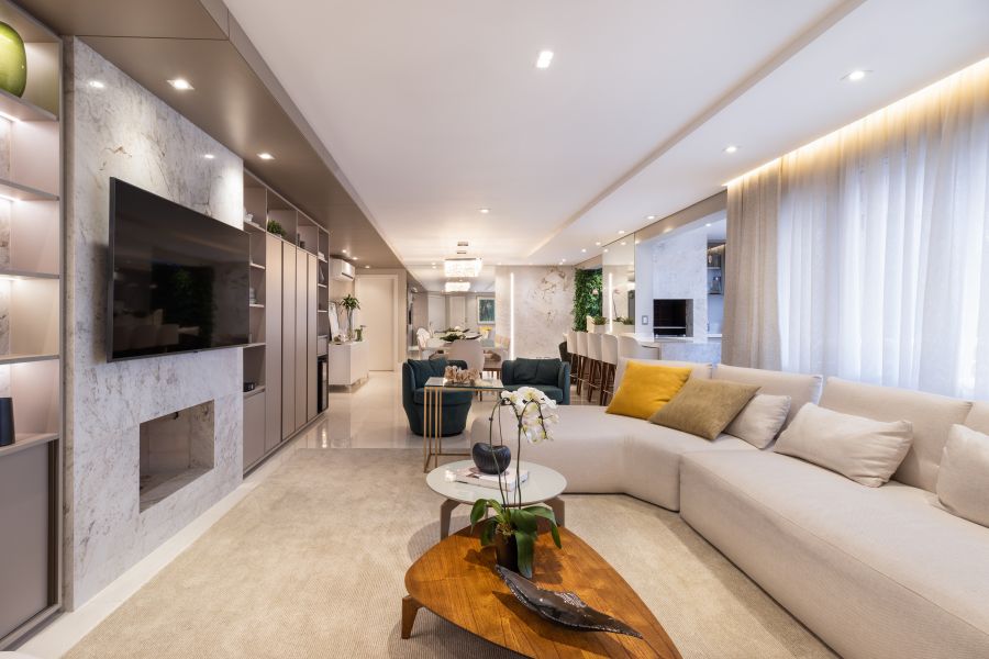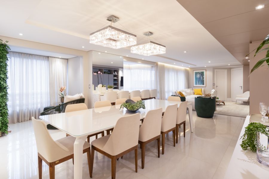 Um décor que pudesse ser atualizado conforme as estações do ano. Esse foi o pedido dos clientes – um casal na faixa dos 45 anos com um filho único – para o projeto desenvolvido pela arquiteta Mariana Paula Souza. Para isso, o imóvel, localizado em Curitiba, ganhou uma base composta por tons neutros.
