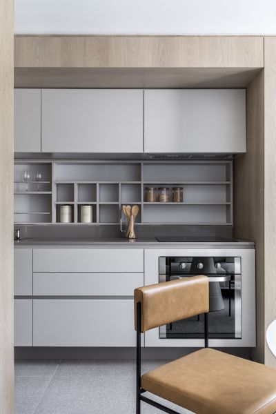 Seguindo um conceito contemporâneo, os arquitetos Guilherme Belotto, Camille Scopel e Thiago Tanaka apostaram em um layout multifuncional, quebrando a ideia de espaços divididos. Dessa forma, a área social pode ser utilizada para inúmeras tarefas, que incluem desde atividades cotidianas – como cozinhar – até receber amigos e relaxar.