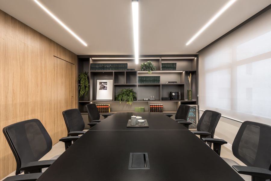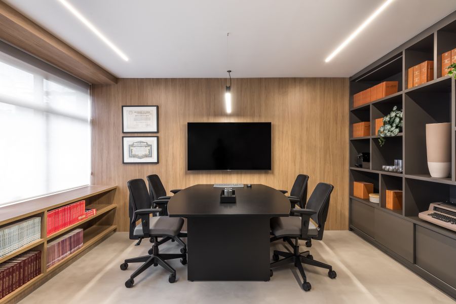 Partindo da combinação entre os perfis contemporâneo e cosmopolita, a reforma deste escritório de advocacia curitibano tinha como principal objetivo a modernização da área de atendimento ao cliente. O briefing inicial recebido pela arquiteta Isis Virmond visava à diminuição da recepção existente para a criação de duas salas de reuniões com usos diferentes – uma para grandes grupos e outra para atender clientes de forma mais casual.