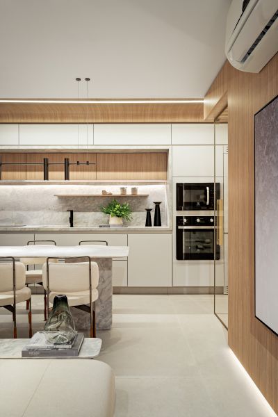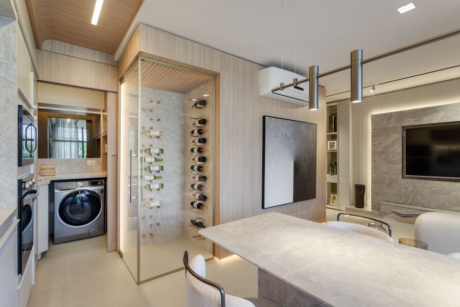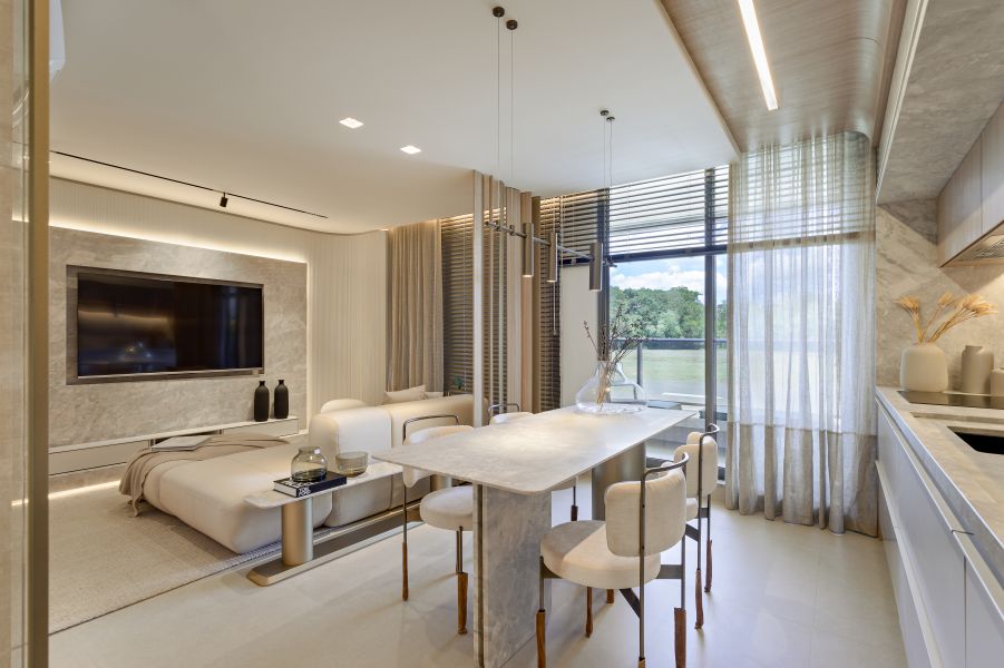 Pensado para quem busca uma experiência exclusiva e diferenciada de morar, o projeto considera diferentes pontos de destaque para que todos possam aproveitar ao máximo todos os ambientes. Para aumentar a sensação de amplitude e suavidade nos espaços, foi utilizada uma paleta de tons claros e naturais.