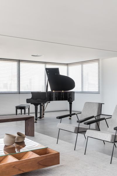 Situado em um dos prédios dos anos 1990 mais importantes de Curitiba, este apartamento de 535 m² foi pensado para um casal com dois filhos adultos que amam receber amigos, beber um bom vinho e tocar piano.