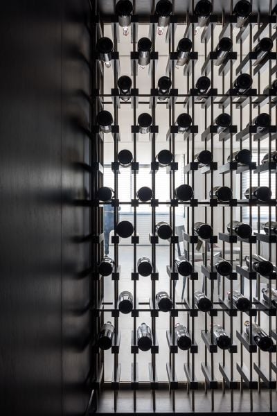 Entre os destaques do ambiente, estão a adega com espaço para abrigar até 300 rótulos e as peças com design assinado – como as poltronas Zina, de Zanini de Zanine, e o banco Matriz, de Jader Almeida. Outro ponto que chama atenção é o piano, que flutua na vista de 360º que o imóvel tem da cidade – de onde é possível ver até mesmo a Serra do Mar.