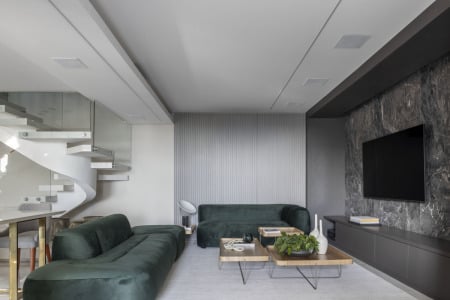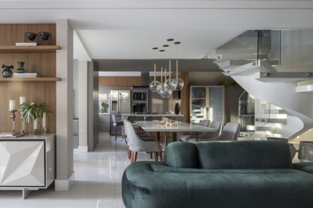 O projeto da Griff Arquitetura, das arquitetas Juliana Marques e Roberta Lanza, é uma ode à natureza e à elegância minimalista, inspirado na vista para o verde do Jardim Botânico de Curitiba. A missão delas foi transformar esta cobertura em um refúgio que transmitisse a sensação de uma casa com um exuberante jardim – e o resultado é verdadeiramente elegante. A perfeita integração entre os espaços internos e externos foi a chave para criar um ambiente social ideal para uma família ativa que adora receber visitas, cozinhar e compartilhar momentos com os filhos pequenos.