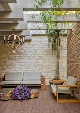 O uso da madeira, da pedra e do cimento mostra a mistura harmoniosa de materiais. (Foto: Renata Salles)