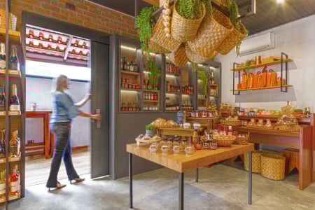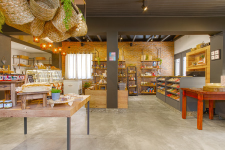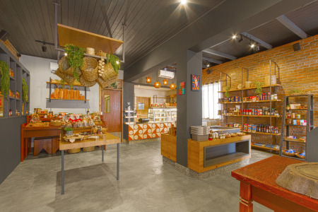 Esse sentimento inspirou o projeto de Patricia Zat em todos os detalhes do desenho. O resultado é uma atmosfera que harmoniza elementos rústicos e industriais. O Empório e Bistrô Tia é destinado a uma clientela especial: os moradores da região do Jardim Botânico. Eles procuram uma experiência gastronômica caseira, um espaço acolhedor para happy hour e pequenas reuniões de trabalho em qualquer hora do dia.