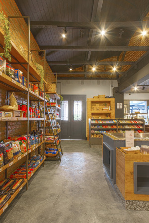 Uma temperatura de cor de 2700 K foi escolhida para criar uma atmosfera intimista, enquanto luminárias de madeira de refloresta- mento foram artesa- nalmente montadas para criar pontos de destaque no projeto, atraindo os olhares para a exposição de doces artesanais e produtos do empório.