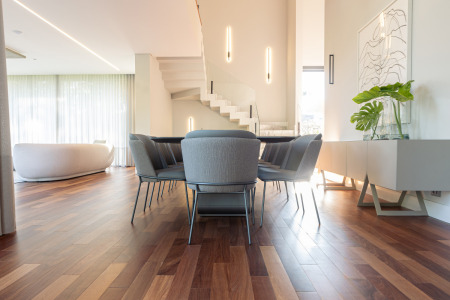 A iluminação desempenha um papel crucial na criação da atmosfera calma deste lar. Foi projetada com cuidado, apresentando pontos de luz pontuais, iluminação indireta e um toque suave para criar uma sensação de tranquilidade. À noite, a iluminação artificial é acesa para criar uma atmosfera relaxante e intimista que é perfeita para momentos de descontração.