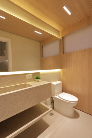 O lavabo segue a mesma linguagem dos outros ambientes da casa (Foto: Inez Sallum)