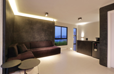 A iluminação é um grande destaque do projeto: a linearidade da luz, juntamente com os pontos direcionados, permite que os moradores tenham diferentes cenas de luz durante o dia. Assim, cada momento recebe uma iluminação especial. Vale destacar o LED colorido usado no quarto das crianças. O ático cria um contraste com os outros ambientes da casa. Com uma atmosfera mais sóbria, ele conta com um bar e estrutura completa para o momento de confraternização entre familiares e amigos. O espaço ainda conta com uma área externa, que valoriza a iluminação natural no ambiente