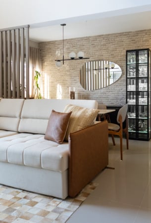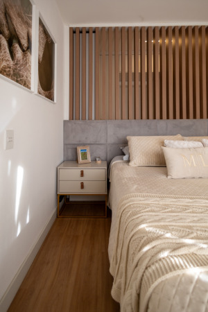 A maior inspiração da arquiteta Pamela Holzknecht, à frente do escritório Holz Arquitetura, foi o estilo e personalidade do casal de clientes. Para este apartamento de 60 m², Pamela desenvolveu um projeto pensado em transformar os ambientes em um lar com propósito e significado.