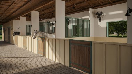 Com um traçado que abraça o campo, o projeto aposta em linhas simples e materiais naturais, valorizando a conexão entre os cavalos, seus cuidadores e a paisagem. O grande diferencial está na forma como os espaços foram pensados: cada detalhe busca traduzir harmonia, ventilação, conforto térmico e, acima de tudo, beleza.