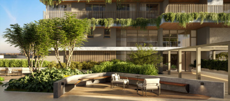 Assim como todo o empreendimento, o projeto de paisagismo, realizado pela Cardim Arquitetura Paisagística, é uma homenagem à riqueza natural do Brasil, priorizando espécies nativas e resgatando a memória cultural do bioma. Inspirados nas curvas e desenhos orgânicos do meio ambiente, os espaços externos equilibram-se harmoniosamente com as linhas retas do edifício. A proposta visa oferecer aos moradores um contato mais íntimo com a brasilidade, explorando a diversidade de cores e alegria presentes na própria natureza.