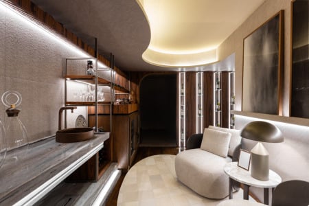 A Adega Residencial da CASACOR Paraná 2024 é assinada por Janaina Marques e Camila Kubota. Além de contar com uma adega funcional, o espaço proporciona uma experiência imersiva para os apreciadores da enologia. O vinho, protagonista do projeto, se faz presente em cada detalhe das cores, formas e texturas que compõem a ambientação.