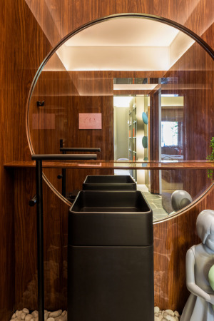 Na passagem de circulação, o público recebe o gentil convite para respirar ares de calmaria. À medida que os visitantes atravessam o espaço, são envolvidos por uma atmosfera de transição suave entre o ritmo acelerado da rua e a tranquilidade de estar em casa.