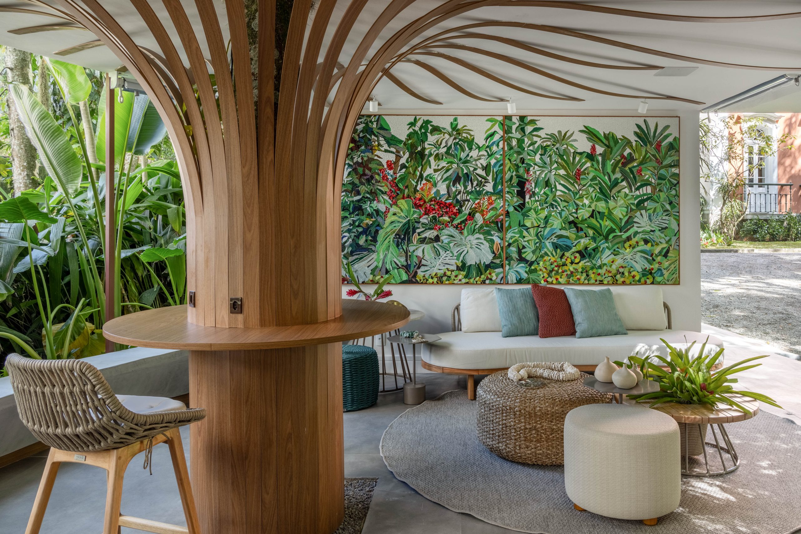A convivência e o receber vão dos ambientes internos aos externos, em espaços abertos ao público como bares descolados, restaurantes charmosos e, claro, a exuberância de 12 mil metros quadrados de jardins formados por espécies da Mata Atlântica.