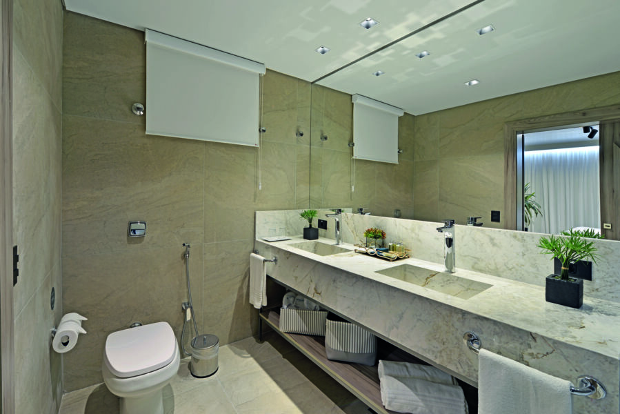 “As suítes executivas e presidencial tiveram seus banheiros reformados, com troca de revestimentos, louças, metais e acessórios.”