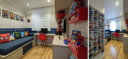 Ainda segundo as especialistas, alguns cuidados são importantes nos ambientes infantis como lembrar que o espaço deve ser projetado para os pequenos, portanto tudo precisa estar à altura das mãos. Prateleiras, ganchos e nichos baixos ajudam na organização e garantem liberdade na hora de brincar, deixando que as crianças tenham autonomia. “Assim, também se estimula o senso de organização, permitindo que elas mesmas guardem os brinquedos depois de usar”, afirmam. Nessa linha, deixar livros na altura dos olhos e com a capa visível é uma boa alternativa. Para organizar, caixas com rodízios também são úteis e permitem uma flexibilidade de layout interessante para esses tipos de espaço.