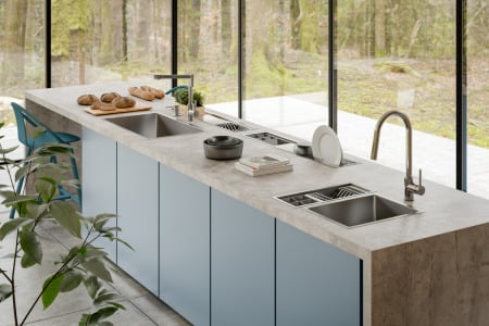 O processo de fabricação artesanal handmade da linha confere o acabamento impecável às peças. Os modelos podem acompanhar gradeado, que traz proteção ao fundo da cuba, e pode ser utilizado como escorredor de louças, e contam com manta antirruído, atributo importante, principalmente em cozinhas do tipo open space.