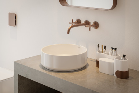 Projetada para ambientes públicos, a torneira pretende ampliar as possibilidades de design para banheiros e lavatórios, pelas diversas opções de acabamentos e cores.
