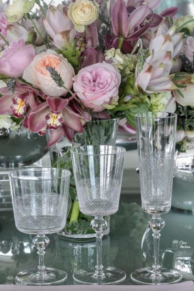 São essenciais no mínimo duas taças. Uma para água e outra para um acompanhamento. Os vinhos devem ser servido sem taças de cristais, que exaltam o sabor da bebida.