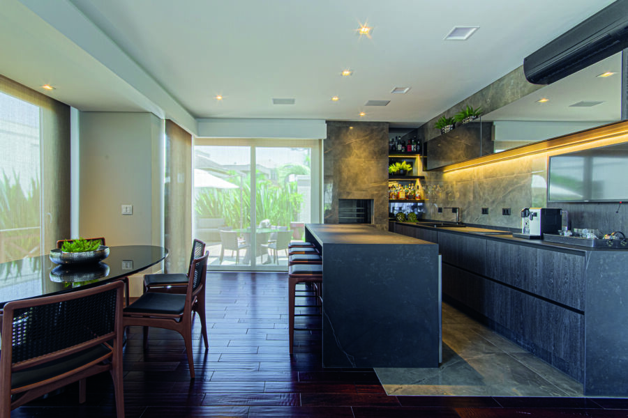 “ (…) foi possível projetar um ambiente gourmet mais funcional, com uma ilha central solta, que permite maior mobilidade.”