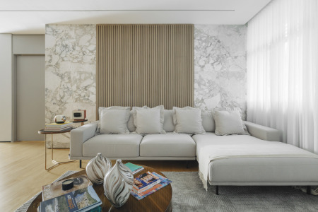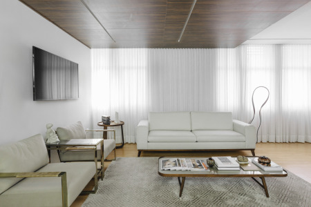 Com a atemporalidade, os espaços do Grupo RIC recebem diferentes combinações de padrões. Os famosos tons fendi, que vão do bege-claro ao cinza-escuro, criam a base do projeto. Os renomados amadeirados, como Louro Freijó, Pau Ferro e Noce Naturale, trazem naturalidade e aconchego para as salas. Para arrematar, MDFs nos clássicos preto e branco conferem um toque de contemporaneidade aos ambientes.