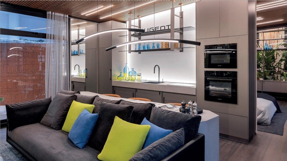 O ambiente Futuro Urbano by Peugeot, criado pelos arquitetos Caio Bandeira e Tiago Martins do Architects + CO, é uma mistura de sustentabilidade e tecnologia com destaque para o carro elétrico Peugeot E 2008, utilizado como elemento de design dentro do loft. O projeto sugere um novo estilo de morar que é pulsante, silencioso e agradável dentro da cidade de São Paulo. Uma das poucas casas na área externa da CasaCor, o projeto de 170 m2 causa impacto logo na chegada, com quarto, living, espaço gourmet, banheiro, varandas e garagem. Os móveis sob medida das linhas Wire e Essential da Ornare aparecem na cozinha, quarto e cozinha e complementam a leveza e estilo inovador do projeto.