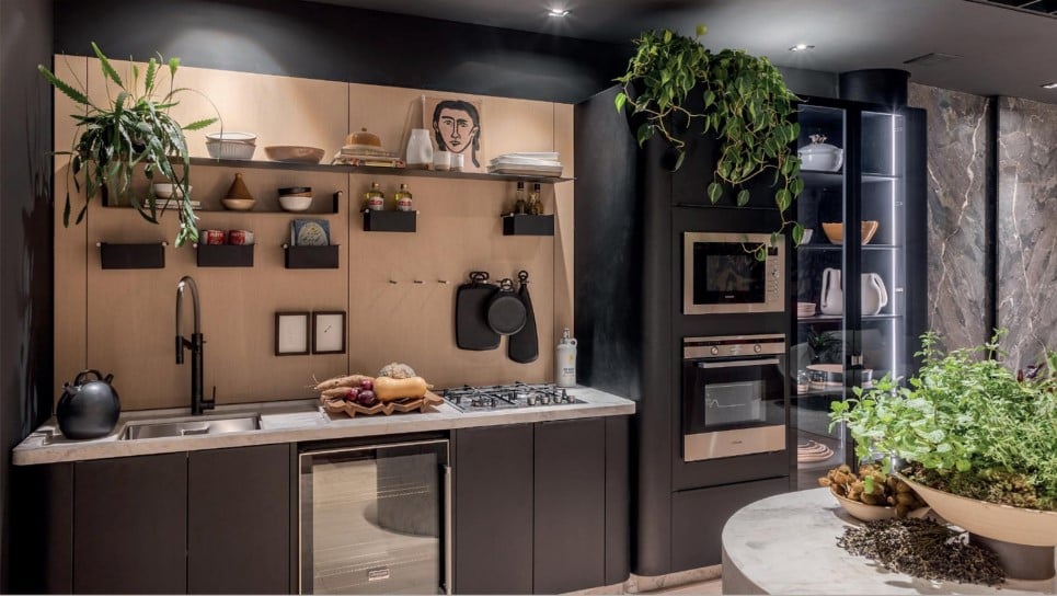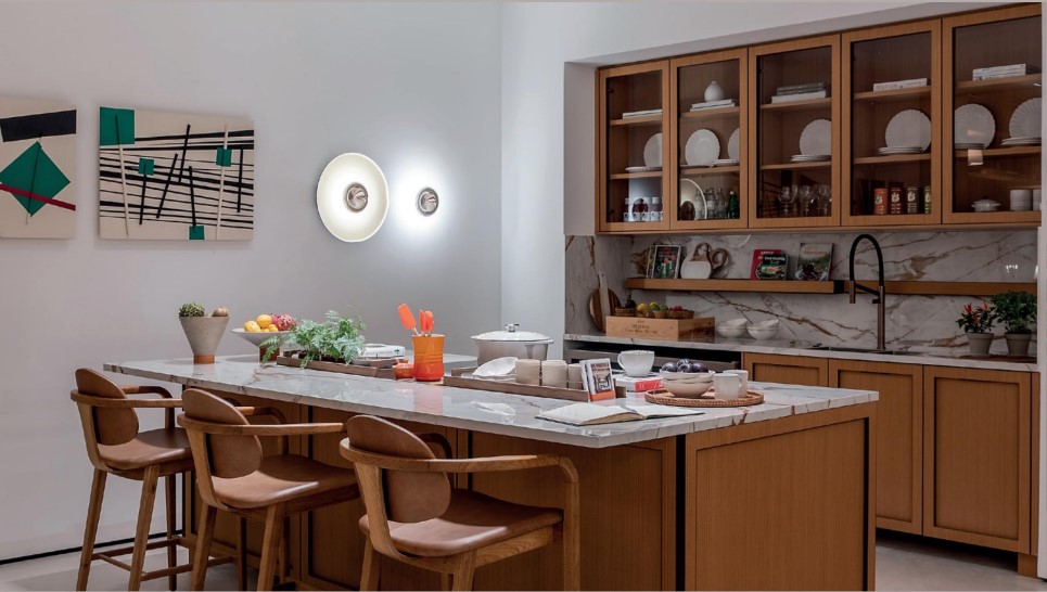 O loft Vastu, assinado pela arquiteta Bianca da Hora, do da.Hora Arquitetura, é um espaço de 120m2 que, além de refletir a essência do Rio de Janeiro, com pitadas de frescor e descontração, também foi idealizado para ser a residência da própria arquiteta na capital paulista. Para evocar esta atmosfera com sofisticação, e já surfando na onda do “luxo silencioso”, Bianca incorporou elementos naturais (como madeira, pedras, algodão, linho, couro e plantas) à arquitetura de interiores e ainda lançou mão da técnica indiana vastu shastra (que deu nome ao espaço) na concepção do projeto. Integrado por living, cozinha com ilha de cocção, lavabo e varanda, o loft explora, com delicadeza, diferentes texturas e tons naturais – em versões rústicase contemporâneas – e aposta na elegância dos móveis. As linhas Ikigai e Wall System da Ornare compõem todo o mobiliário da cozinha.