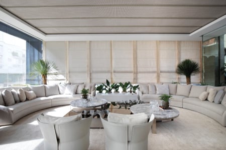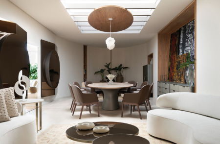 ”Aplicado ao design de interiores, meu conceito de felicidade resulta em um espaço multifuncional que promove conforto, sociabilidade e prazer. “São móveis que, além do visual impactante, permitem que a família e seus convidados desfrutem de momentos intensos de convívio, celebração e prazer.”