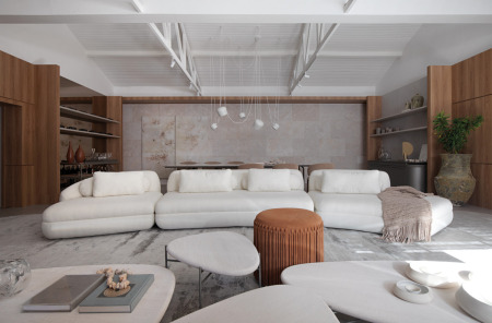 “Projetamos um living integrado que convida os visitantes a se sentirem à vontade, proporcionando um refúgio tranquilo em que é possível relaxar e desfrutar da companhia de pessoas queridas. Criamos espaços que estimulam a interação e a conexão entre as pessoas.”