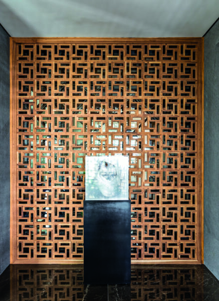 “Um dos pontos altos do projeto é o desenho do hall, com a importante escultura de Ângelo Venosa, cercada pela estrutura de madeira, que se assemelha ao tradicional muxarabi árabe.”
