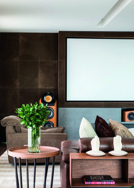 O home theater — extremamente confortável — reúne o luxo e a qualidade de se ter um cinema em casa, graças aos equipamentos da Livemax. A tecnologia de ponta contribui para o lazer e a integração da família e dos amigos.