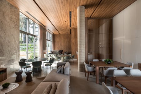 Para as áreas comuns, o projeto buscou atender exatamente o que as pessoas procuram: espaços úteis e bem dimensionados, e áreas verdes para descompressão e relaxamento, com conforto e segurança. Segundo Jayme Bernardo, a localização ao lado de um bosque em uma área tão desejada é um verdadeiro privilégio, e ajudou a dar o tom para o projeto desenvolvido.