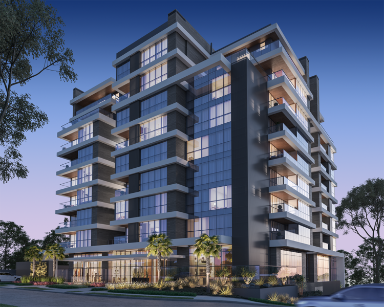 O edifício de luxo em Curitiba tem apenas 25 unidades. Destas, 18 são apartamentos tipo, com 3 suítes e 3 vagas de garagem, com área privativa entre 150,04 metros quadrados e 187,83 metros quadrados. Todas as unidades tipo têm piso da sacada nivelado com o da sala.