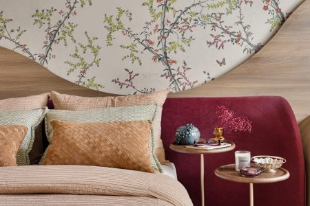 O Quarto Feminino mostra que a tendência de compor com diferentes cores e texturas não precisa ser maximalista, pode ser sutil. Combinar um ponto de cor com tons neutros, ou texturas leves com papel de parede delicado, revela um equilíbrio entre identidade e sofisticação.