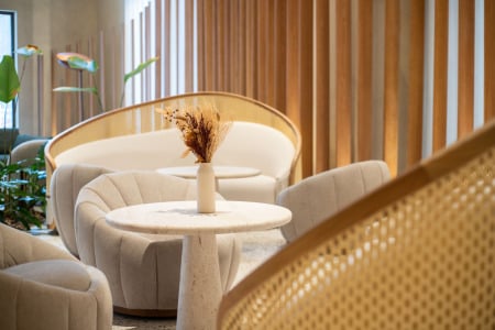 O nome do sofá que compõe o lobby do Qoya Hotel Curitiba, Curio Collection by Hilton, novo hotel de luxo de Curitiba, é uma pista sobre as sensações que o local desperta: Ninho. É acolhedor, natural, um verdadeiro refúgio de tranquilidade e hospitalidade.