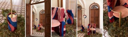 A coleção desenvolvida pelo trio de criativos surge da vontade de conectar diferentes universos, a arte manual e orgânica das tapeçarias de Rocca com o design industrial e minimalista do mobiliário desenvolvido pela Tiie Design.