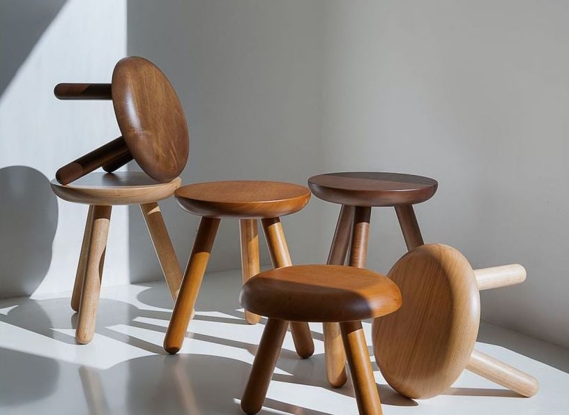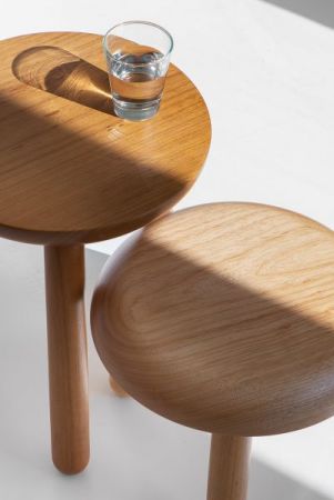 Outro destaque direto de Curitiba na MADE 2022 é o arquiteto e designer Leandro Garcia. Antecipando sua apresentação no FUORISALONE de Milão, com início em 07 de junho, Leandro traz para a MADE os bancos simples, compostos por três pés de madeira maciça torneados com acabamento em meia-esfera e assento de madeira maciça com bordas arredondadas.