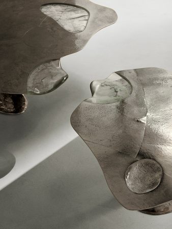 Aqui forma, função e estética unem-se em um design com propósito e extremamente sofisticado, tanto pela técnica, como pela beleza. Vincenzo de Cottis, entregou em Milão: Je Marchais Pieds Nus Dans L’Étang. Uma instalação sóbria com peças que realmente explora a interação entre materialidade, luz e natureza. Peças contemporâneas com base de bronze branco fundido e vidro de Murano esculpido e pintado à mão criam um diálogo entre profundidade e transparência.