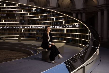 O universo da biblioteca, mas além dele, da ciência e cultura da Pinacoteca de Brera foi um ponto focal da Design Week de Milão. Pela primeira vez, o Salão do Móvel rompeu a fronteira da Rho Fiera e entrou de fato no Fuorisalone, com a instalação Library of Light, assinada por Es Devlin, artista e designer britânica, conhecida como um ‘poeta da luz’ e responsável pela cenografia de grandes artistas como Beyonce, Kanye West e Adele.