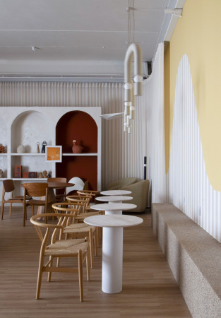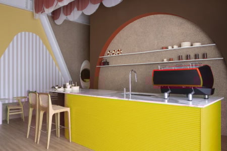 O Café Graça, traz uma paleta de tons terrosos e texturas naturais que remetem à paisagem do deserto africano e à riqueza da cultura regional cuiabana. Especialista em cores, Oher utilizou sua expertise para criar um ambiente caloroso e orgânico, que acolhe corpos de verdade, femininos e diversos, representando uma celebração da pluralidade e da história de sua família.