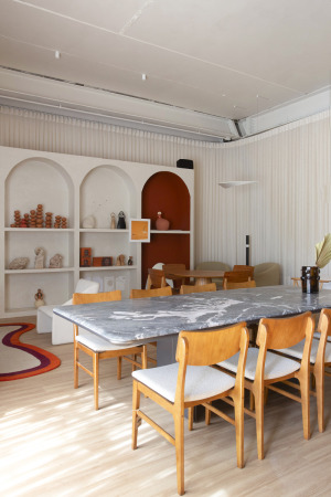 Com uma luz baixa e calma, ideal para momentos de repouso e trocas de olhares sinceros, o projeto prioriza a criação de um ambiente íntimo e acolhedor. A curadoria dos móveis soltos traz uma seleção de peças assinadas por designers renomados, como Jaider Almeida, e inclui móveis autorais criados pelo próprio escritório OHMA Design. Cada peça foi escolhida para traduzir a elegância e o equilíbrio entre o tradicional e o contemporâneo.