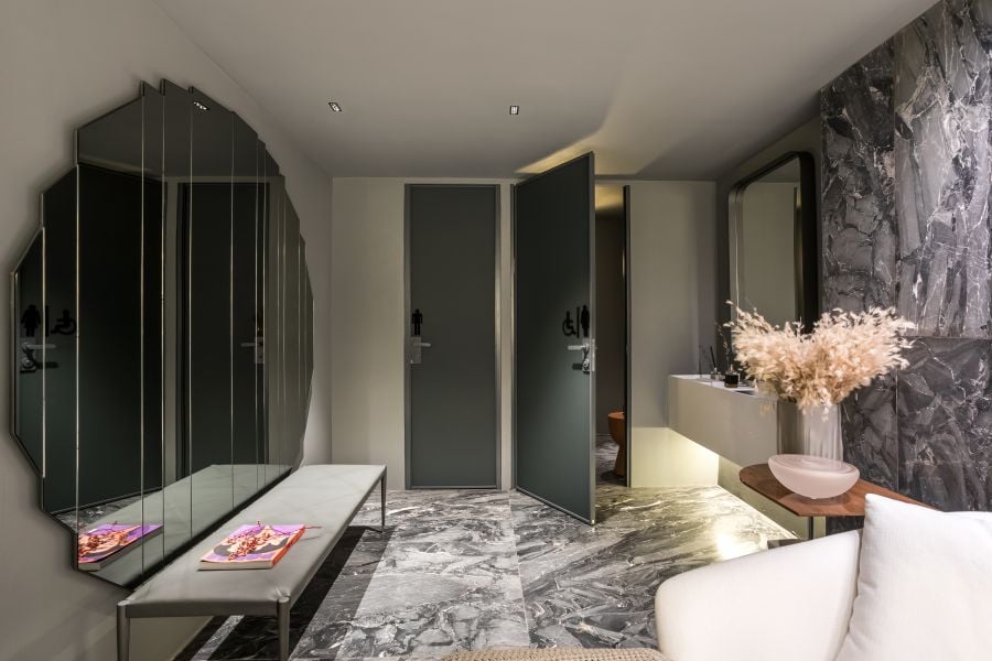 Em um lavabo de aproximadamente 15 m2, o escritório de Giuliano utilizou mobiliários assinados por artistas nacionais e produções locais. O espaço conta com um minimalismo contemporâneo e criativo, somado a uma boa iluminação – pontos muito fáceis de serem identificados nas obras assinadas pelo escritório.