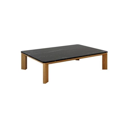 Tampo de pedra natural, disponível em várias cores, e com base em madeira maciça golden teka, a mesa de centro adiciona um toque de luxo ao ambiente com durabilidade e resistência.