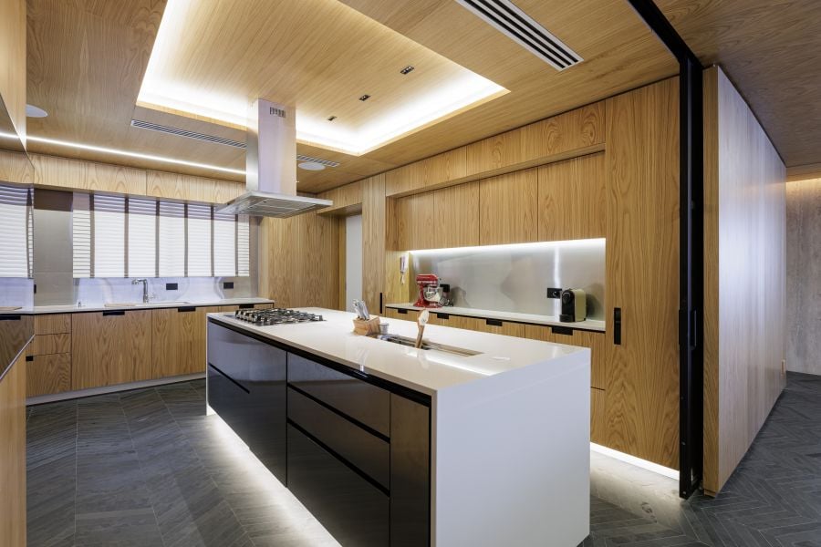 “A gente mudou muita coisa da planta original. Quebramos todo o piso e colocamos ardósia negra. Mudamos a porta da sala de lugar, tiramos uma suíte e colocamos uma academia no local. Outra exigência era ter um closet bem amplo”, descreve.
