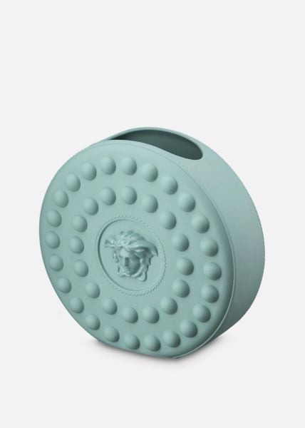 Lembrando o design de uma das bolsas crossbody da Versace, o vaso La Medusa é redondo e total com tachas por todos os lados. É uma peça de decoração memorável para se ter dentro de casa. Onde encontrar? No site www. versace.com. Preço: aproximadamente R$ 4.000,00.