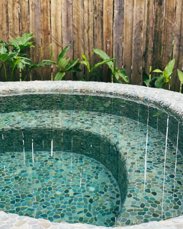 O revestimento de Pedra Hijau transmite a sensação de um lago natural, excelente para projetos que desejem maior conexão com a natureza. O item de origem natural da Indonésia apresenta uma cor vibrante em tons de verde, com alta capacidade de absorção de água, resultando em um aspecto brilhante, especialmente quando expostas à luz do sol. A tonalidade de verde que lembra os mares do Caribe, reforça a elegância e promove sofisticação para a área de lazer. O item possui m² a partir de R$ 346,50 .