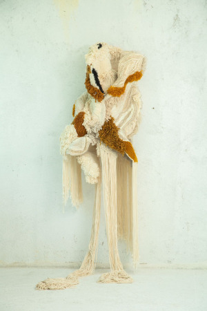 Pela primeira vez, o artista mescla os trabalhos de bordado manual, tufting, e tear manual, além da combinação demarcada por metais delicados como latão e cobre e a composição com tecidos naturais que evocam traços de um legado artístico-religioso, que norteiam rituais e cotidiano do povo, comunicando como a ornamentação pode envolver a cinestesia do corpo em profundidade às suas tradições.
