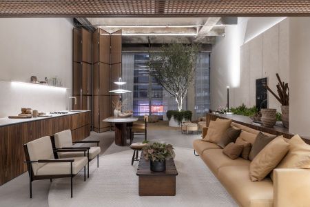 A arquiteta Ticiane Lima marca presença na mostra com um espaço de 147m² minimalista e elegante que apresenta um antídoto para a agitação da cidade grande. O Loft (In)terno proporciona reflexão interior e tranquilidade, dividido em sala, cozinha, quarto, banheiro e jardim. Para o piso do loft, a arquiteta utilizou a peça Citta GR NAT, um design marcado com leves nuances.